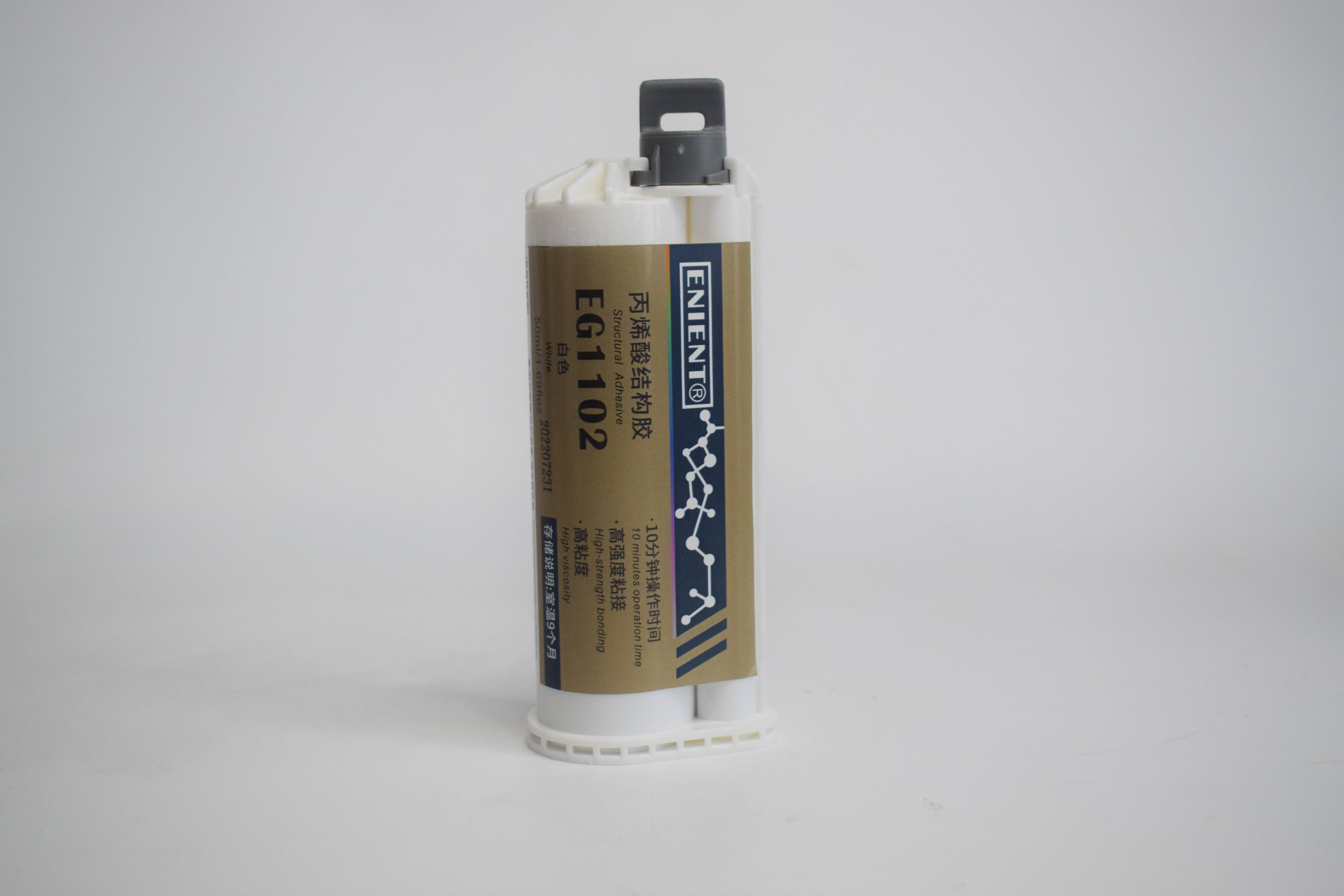 ENIENT開發(fā)了一系列丙烯酸結(jié)構(gòu)膠EG1102系列,具有黑色,白色,透明色,綠色等多種顏色,對于ABS與各種材質(zhì)之間的粘接效果甚佳,可達破材級別。
