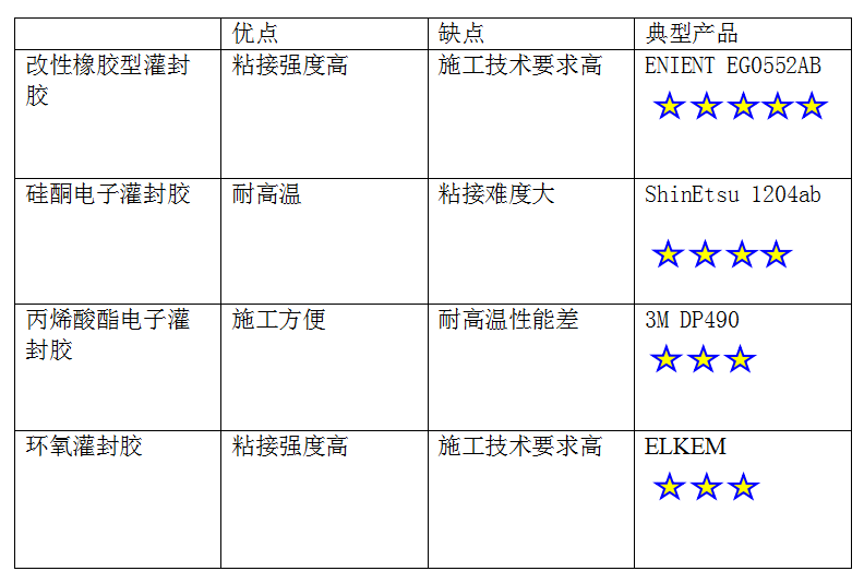 根據以上對比,不同類型的電子灌封膠各有優缺點,選擇時需結合具體的使用環境和要求來進行綜合考慮。此外,我們還為大家匯總了一些知名的電子灌封膠品牌,包括ENIENT英雷恩特、3M、托耐特、杜邦等,這些品牌在市場上具有較高的知名度和口碑,可以作為選擇的參考。