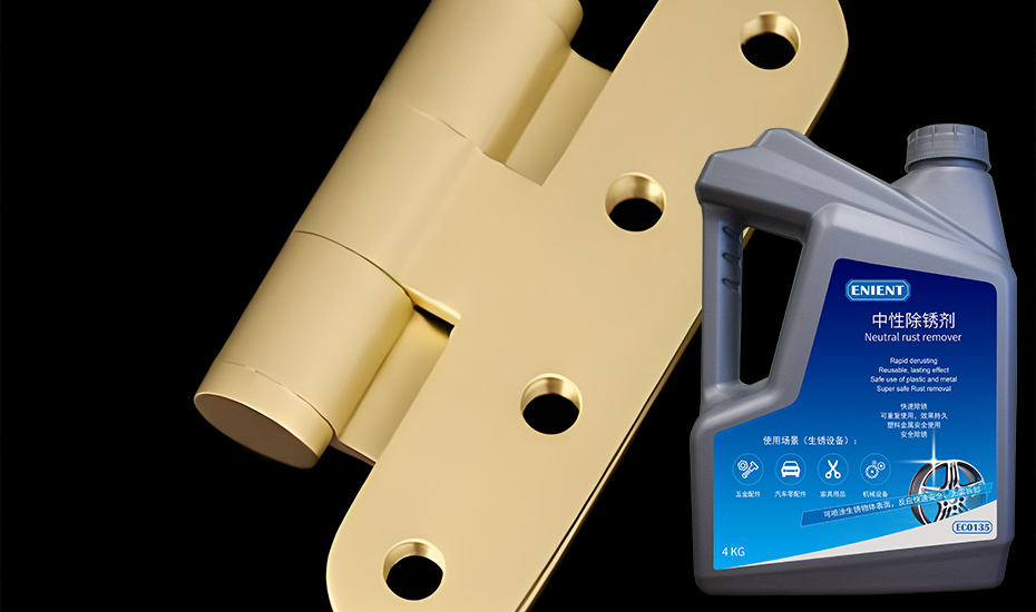 ENIENT®EC0135快速去除黃銅鉸鏈銹蝕應(yīng)運(yùn)而生。作為一款水基安全可噴涂除銹產(chǎn)品,它不僅能迅速有效地去除黃銅表面銹蝕,而且對(duì)鉸鏈材質(zhì)本身不會(huì)造成損傷。這款產(chǎn)品的核心優(yōu)勢(shì)在于其水基環(huán)保配方,不含腐蝕性強(qiáng)酸,使用后不會(huì)殘留任何對(duì)金屬或環(huán)境有害的物質(zhì)。這意味著,這款除銹劑不僅安全可靠,適用于家庭日常使用,而且在工業(yè)領(lǐng)域也同樣適用。