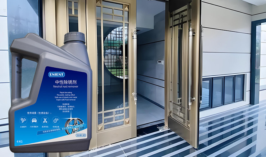 為了解決這些難題,ENIENT®重磅推出了一款專為黃銅除銹設計的產品——EC0135中性除銹劑。該產品以中性配方為核心,能夠在不傷害黃銅材質的前提下,快速、有效地去除表面銹跡,讓您的黃銅門框煥發如初的光彩。
