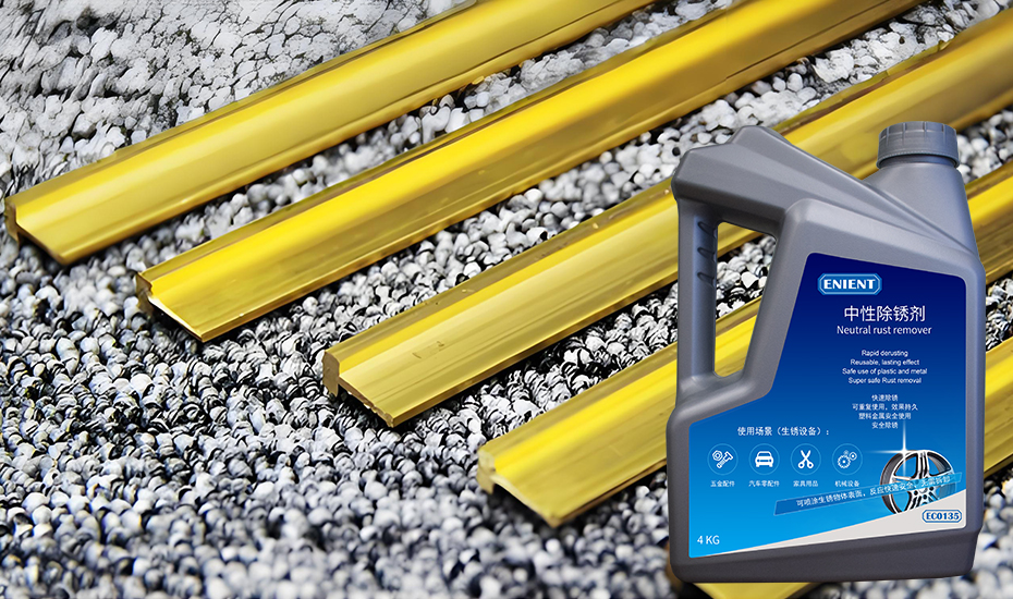 李先生家中的黃銅裝飾條已經使用多年,逐漸出現了明顯的銹跡。起初,他嘗試使用家中的普通清潔劑清理,但效果不佳,銹跡依舊頑固。為了恢復黃銅裝飾條的原有光澤,李先生決定嘗試市面上口碑極佳的ENIENT®EC0135中性除銹劑。