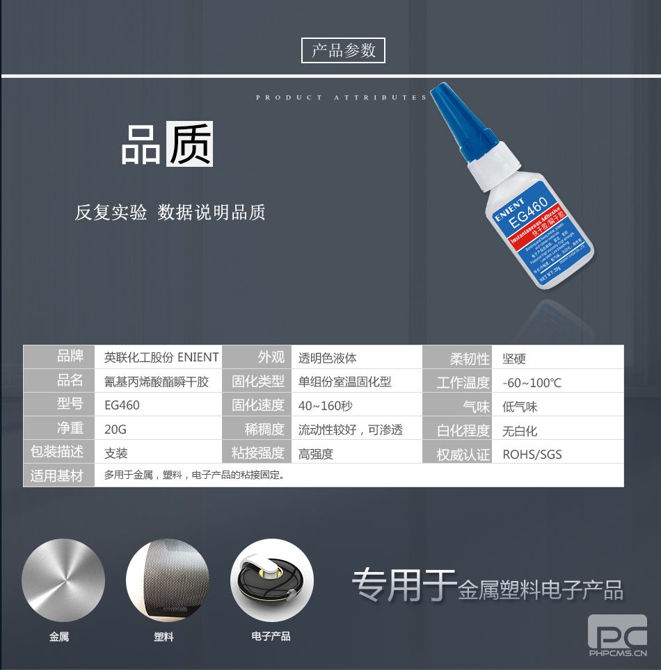 ENIENT EG460快干膠金屬塑料電子產(chǎn)品粘接40~60秒固化無白化透明20G