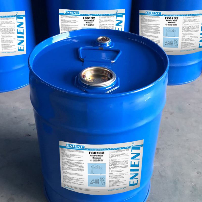 那么,有低溫條件下就能夠快速除銹的中性除銹劑嗎?ENIENT近期發表的一份研究表明,增加螯合劑的濃度對除銹反應速度的提高是有限的。其科學家發現一種微量添加劑,可以改變溶劑對銹蝕的溶解速度,并且有很大程度的提高,這種物質僅需在常溫下就有效,并且不會產生劇烈放熱。能夠使得中性除銹劑同時具備溫和和高效的性能。這種黑科技的發現彌補了原來中性除銹劑速度上的不足,使得除銹反應時間提高到5分鐘以內,這種ENIENT EC0132系列中性除銹劑,可以說是一個突破性的發明,將會大大改變人們對中性除銹劑的固有印象,使得中性除銹的廣泛使用成為可能。